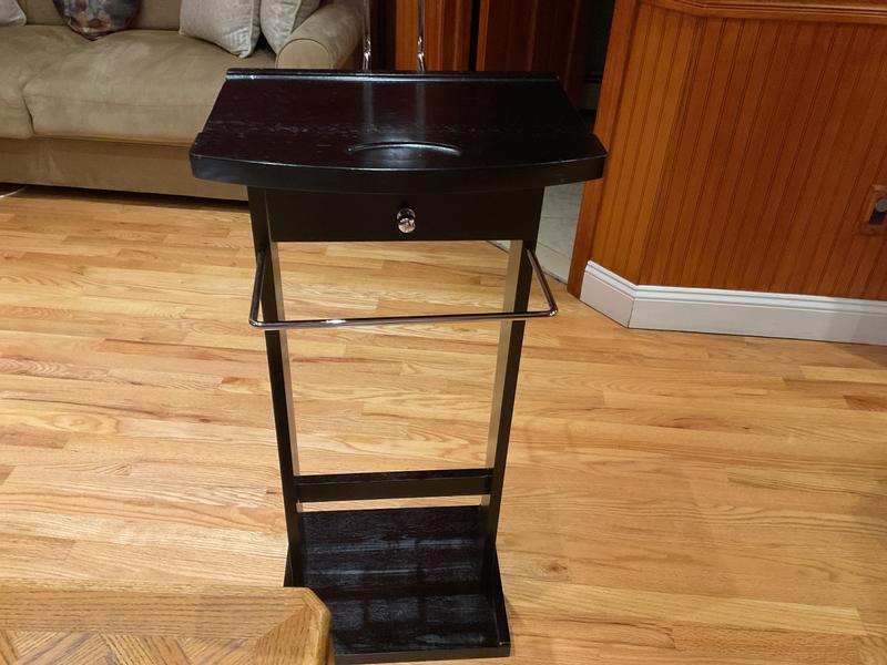 I am disappointed of the color. It’s black not dark brown as the picture shows. Still , I decided to put together to see how sturdy it is ….. unfortunately I can’t tell because two of the screws are missing. I’ll see if I have screws that will fit. I’m undecided if I will return it. I’m not if I would recommend it since the unit is not fully together yet