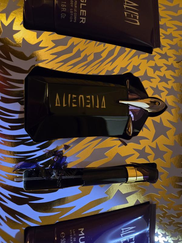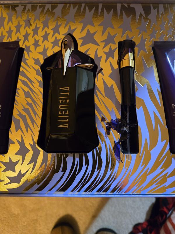 My skinny purse-sized bottle of Alien was broke and leaked all out in the box. So instead of a 4pc set it was 3 pieces