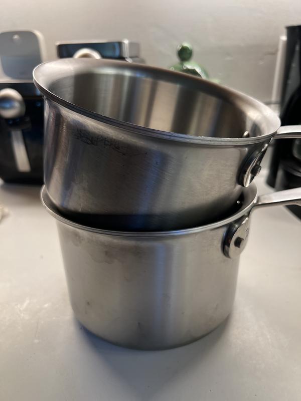 I bought this since the 1.5-Qt size pan that came with the set was too small for regular use. I would really like a pan that held 2.5 Qts with a wider base so that it would nest with the 1.5Qt pan to help with storage. That was not available but the reason I gave this pan 4 stars instead of 5. Nesting storage is critical for many who have smaller kitchens.