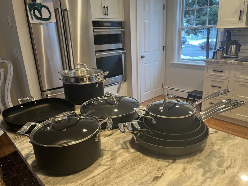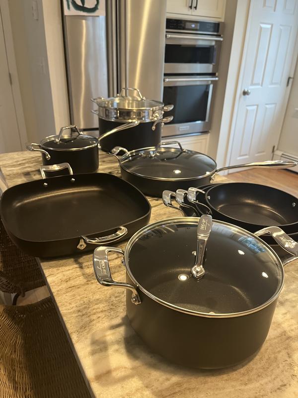We absolutely LOVE this set! My sister has All-Clad and for years, we have wanted to have our own. The construction and quality of the set is incredible. I love the square fry pan for bacon, skillet casseroles, bread pudding! When they arrived, at first I was worried if they would not fit in our drawers, but they stack so perfectly that we even have extra space. You will love these and we're looking to buy more!