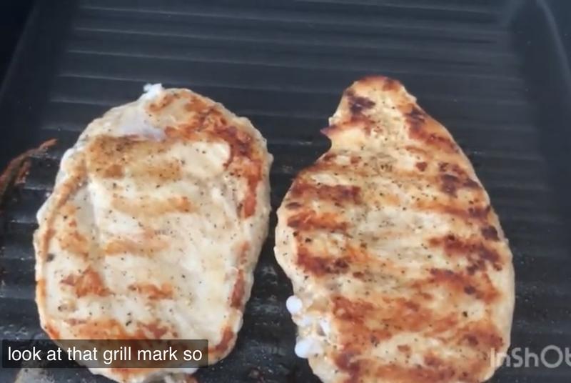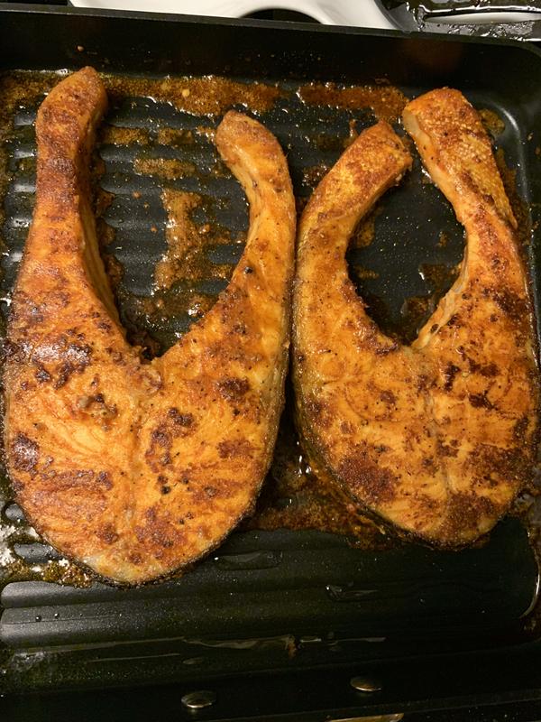 I made lamb loin chops as my first try out and not only did it grill with beautiful grill lines, I had no sticky residue left. I love that it has a pour slit on the edge of the grill to pour the leftover juice.