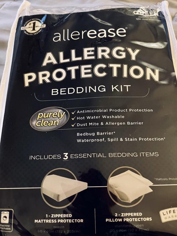 This Allergy Protection Bedding Kit is a great way to protect your bedding. It takes two people to fit the cover over the mattress but worth the effort. It protects against dust mites, bedbug and is an allergen barrier. Waterproof and stain proof. Can be washed in hot water and still stay in shape. Also includes two pillow covers. Only downside is it is a little noisy.