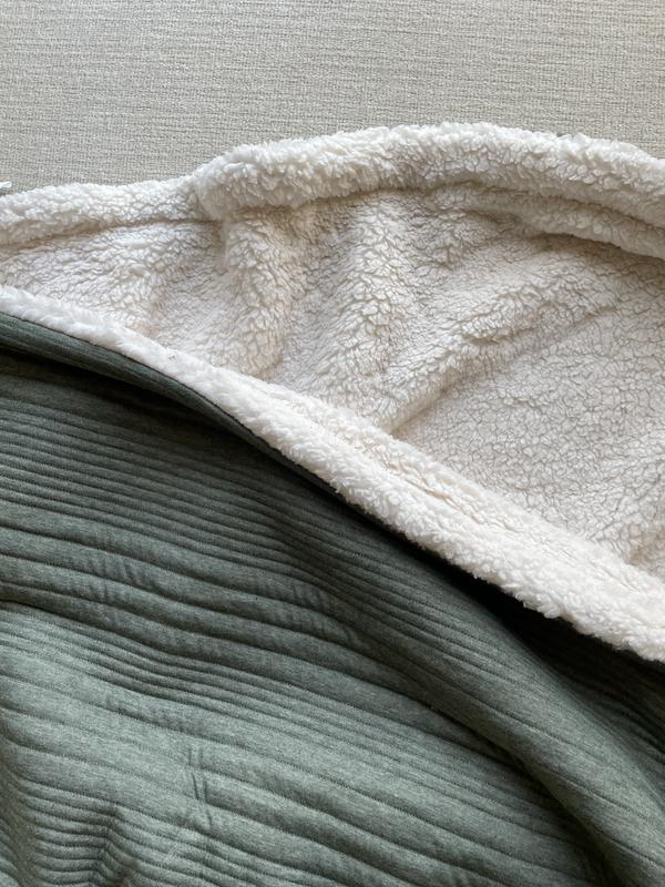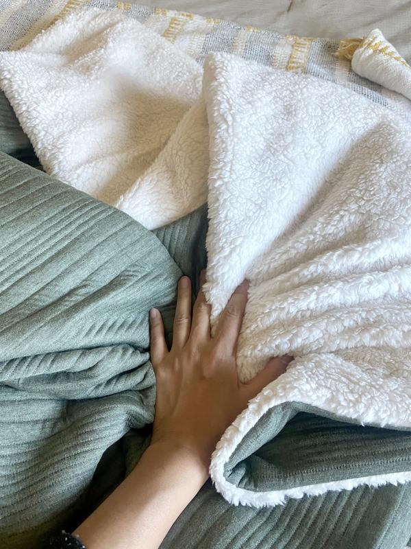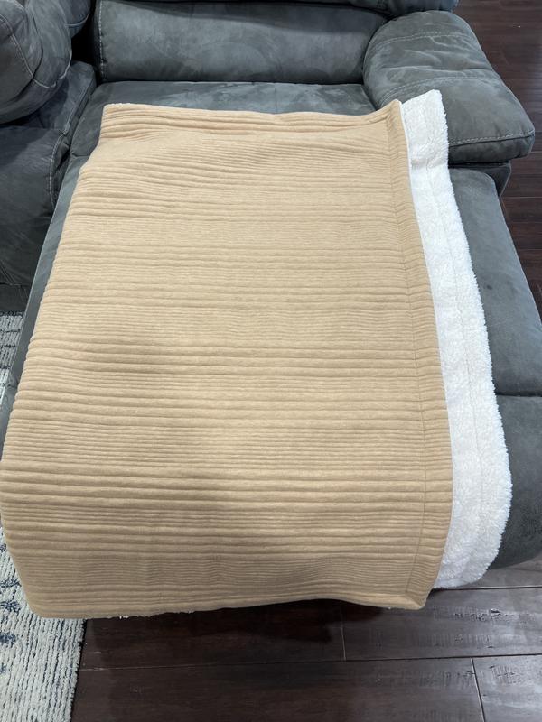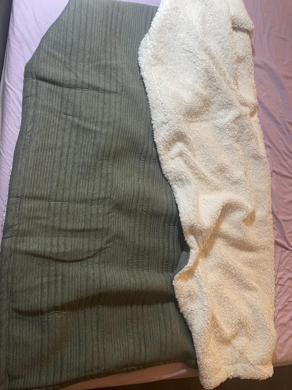 Excellent throw. The jersey lined faux wool throw is perfect for a rainy day! The jersey side is soft and the material is quite attractive. The faux sheep's wool side is very plush. I even bought a few more for Christmas gifts!