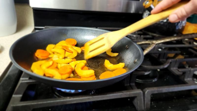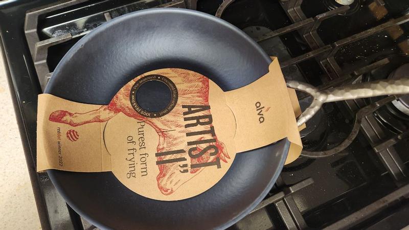 The Alva carbon steel frying pan is a heavy and durable small frying fan (9 inches). It changed colors the first time we used it, which I have heard happens sometimes with these types of pans. My partner reports that it was decently nonstick and was also easy to clean.