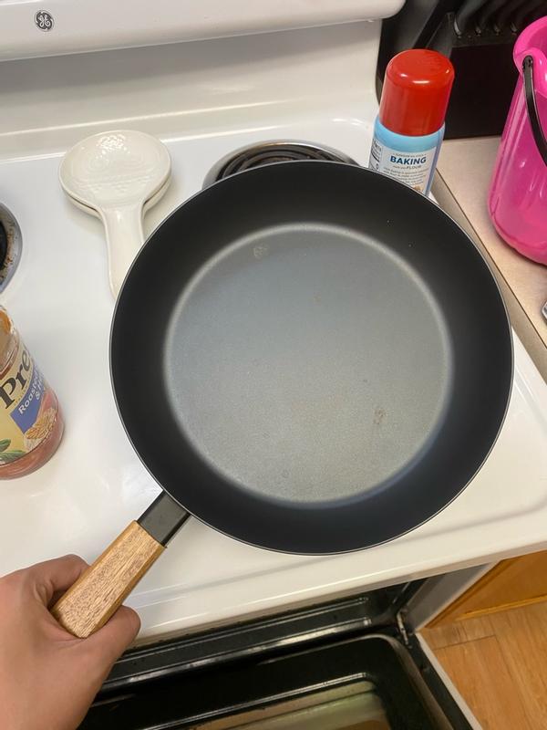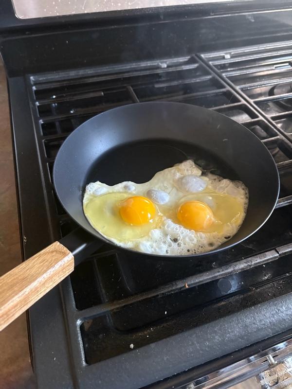 Okay. This pan is amazing. I love the look of it. The wood handle. It’s beautiful. It’s so easy to clean. It was quick to heat up and cooked my eggs flawlessly and nothing stuck to it whatsoever. Needless to say it’s my new favorite pan