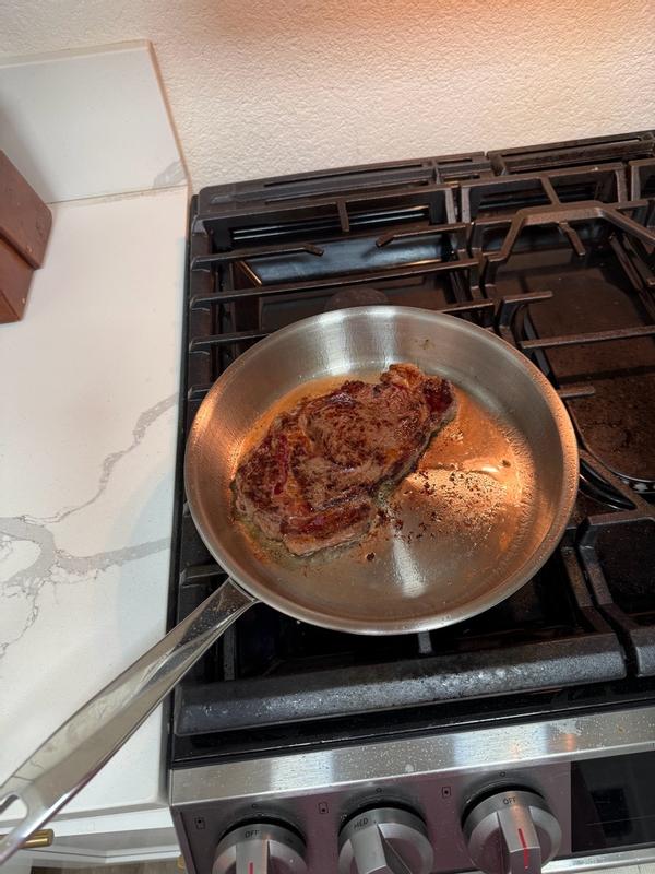I’ve been wanting a stainless steel pan so I was super excited to try this out. I love the size and how sleek it looks. It was super easy to clean and I was able to fit a pretty large steak. The sear was perfect!