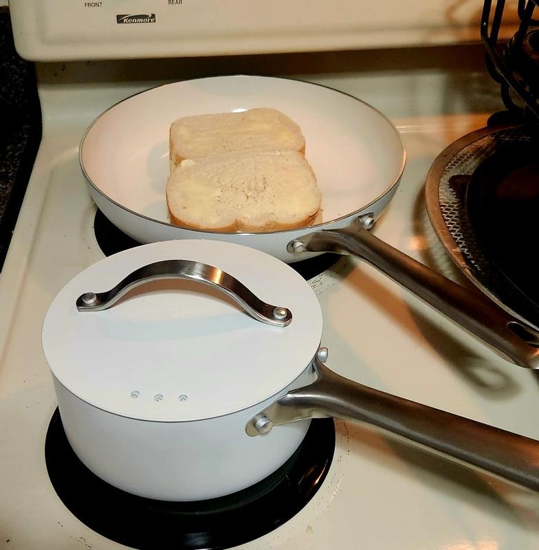 I love this set of pots and pans i recently received on infIuenster to test out. I used the pan to make breakfast I love that the meat all heated at the same time so the heat distribution was great. After cooking the sausages I did eggs right in the same pan and the clean up was a breeze. The only negative is that the handle gets a bit warm but not too hot. I definitely prefer these to my other pans.