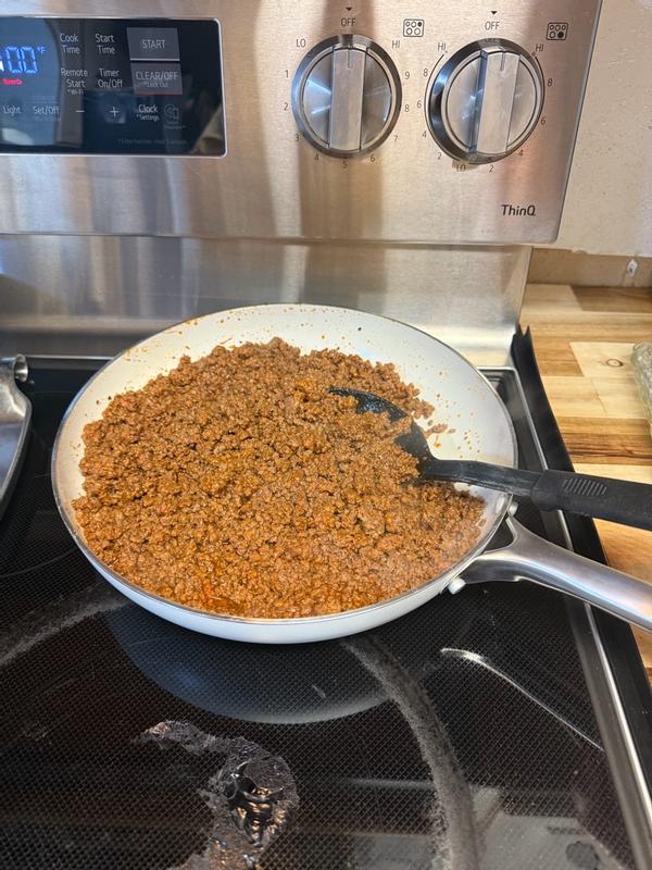 This is my absolute most favorite cookware set. I always struggle trying to find the perfect set. These make cooking easy. So try the proper utensils, they can last a long time. It’s easy to saute ground beef or chicken. Veggies simmer down well with a dab of olive oil. It heats well through the entire pot/pan. My son is over the moon excited to make pancakes that don’t stick! I recommend 100% plus some!