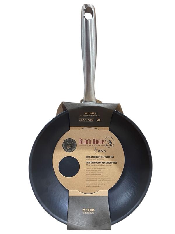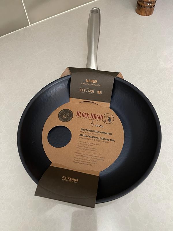 This is my first time using a carbon steel pan, and the Alva Black Angus frying pan has really impressed me. It feels solid and well-made with a nice weight to it — definitely gives off a high-quality, professional feel. Once seasoned, it developed a smooth surface that cooks beautifully. Food releases easily, and I’ve gotten amazing sears and crisp textures that I never managed with my nonstick pans. The handle stays cool while cooking, which I love, and it’s surprisingly easy to clean. After a quick rinse and light oiling, it’s ready to go again. I did notice a slight color change in a few spots after cleaning, and since this is my first time using this type of material, I’m not sure if that’s normal — but it doesn’t affect how it performs at all. Overall, I’m really happy with this pan. It heats evenly, feels durable, and is quickly becoming my go-to for just about everything. A great choice if you’re curious about trying carbon steel!