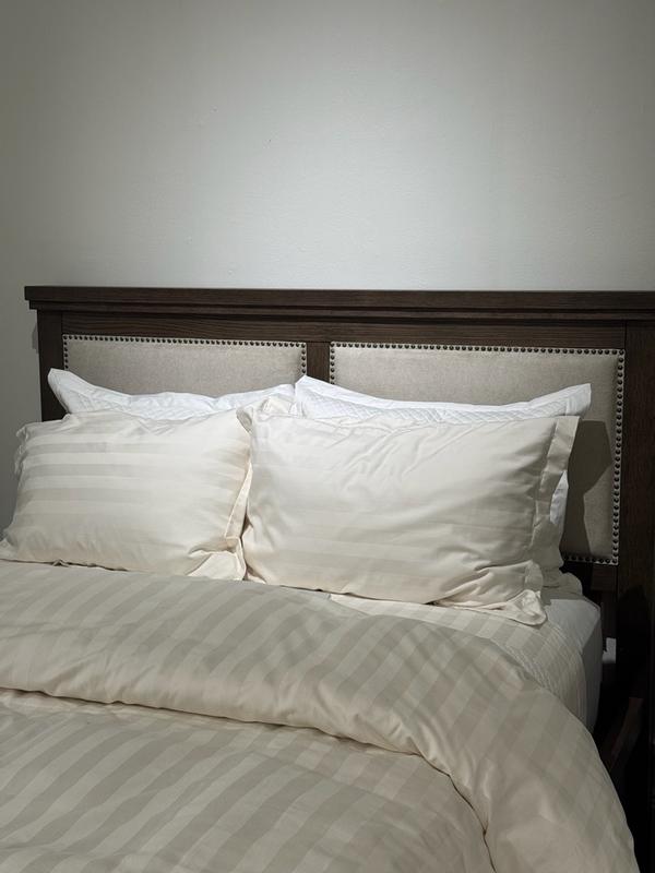 I am beyond impressed with this wood bed frame! The natural wood grain gives it a warm, elegant look that elevates our bedroom. It looks really nice, and my guests have complimented how fancy it is. It also doesn’t creak when moving around on it, which is a huge bonus. It fits my mattress perfectly, and the headboard is a really nice touch for a chic room. The combination of wood and fabric looks high-end, and the natural color fits any deco..
