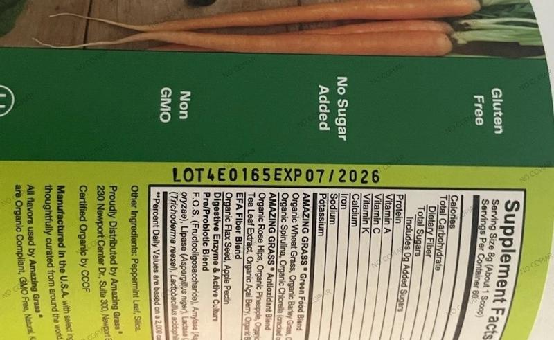 We updated the Other Ingredient declaration for Amazing Grass Greens Blend and added "fructose" in the Other Ingredients as it a component of the flavor system. The amount of sugar it provides is dietarily insignificant and the Supplement Facts panel has a declaration of 0g Added Sugar to reflect that the formula does not contain a significant source of added sugars.