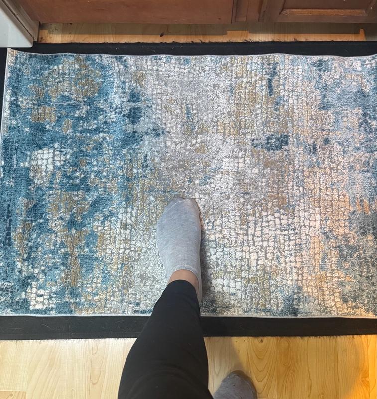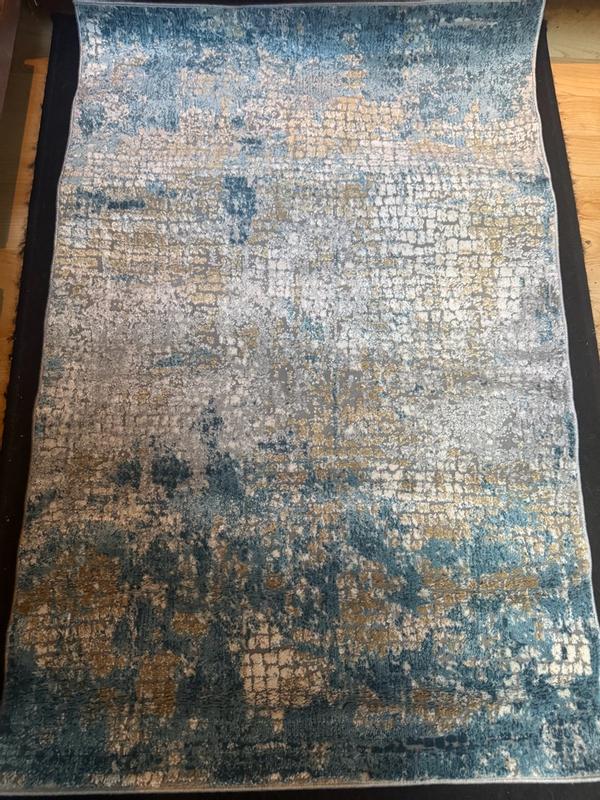 This rug is so plush and beautiful! Love the blue and gold combo a lot though I do wish the faded effect wasn’t so strong. The rug is very soft but seems to be well made.