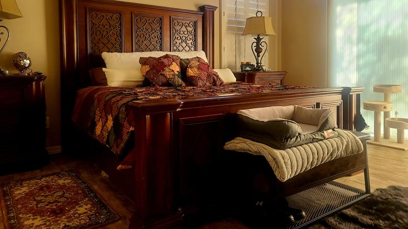 This set is absolutely beautiful. It is holding up very well even with my big dog and all of his toys. I have the King set (Macys has the best price), extra shams, 2 throws (one as a wall hanging) and one pillow. Just looking at it makes me feel good! It's colors go with a wide variety of settings,