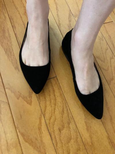 Really love these, you could never wrong with a black classic flat! I like the pointed front because it makes my leg look longer. They're also comfortable to walk in and the insides are padded so it adds an extra layer of comfort as well. The back has an elastic stretch which also helps as they're not too tight but they allow for a bit of room. They make for a good shoe whether for casual wear or even if you're looking for work shoes.