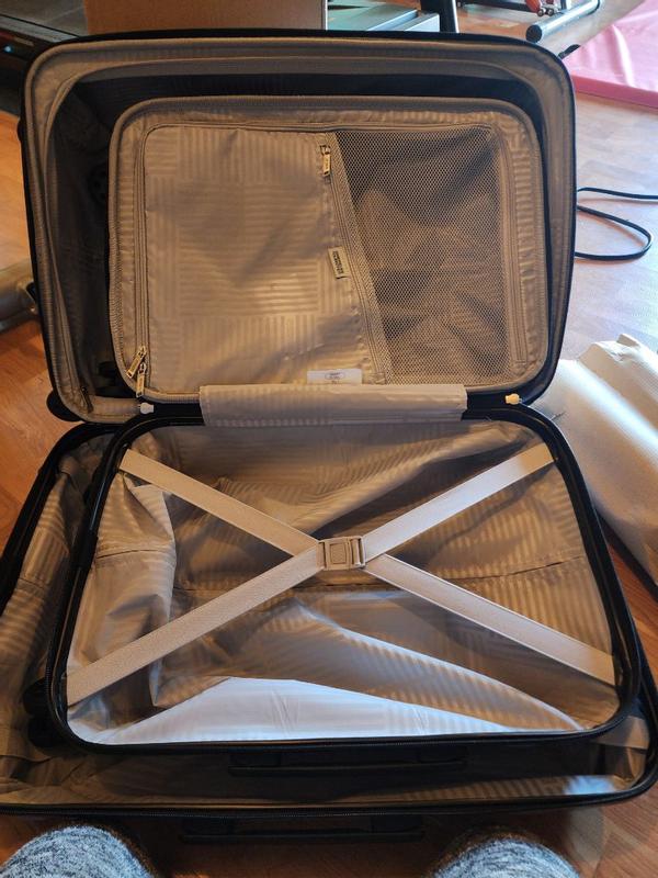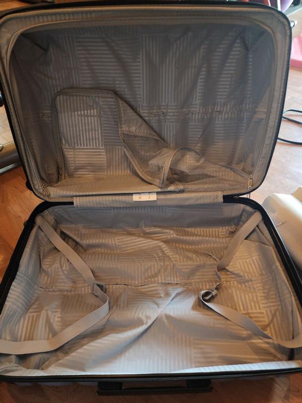 This suit case was really spacious. I always worry the hard shells would break but this one held together great. I liked that the wheels spin all the one and does a 360 spin. After use it just had a few scuff marks but nothing that can't be wiped off.