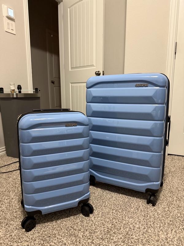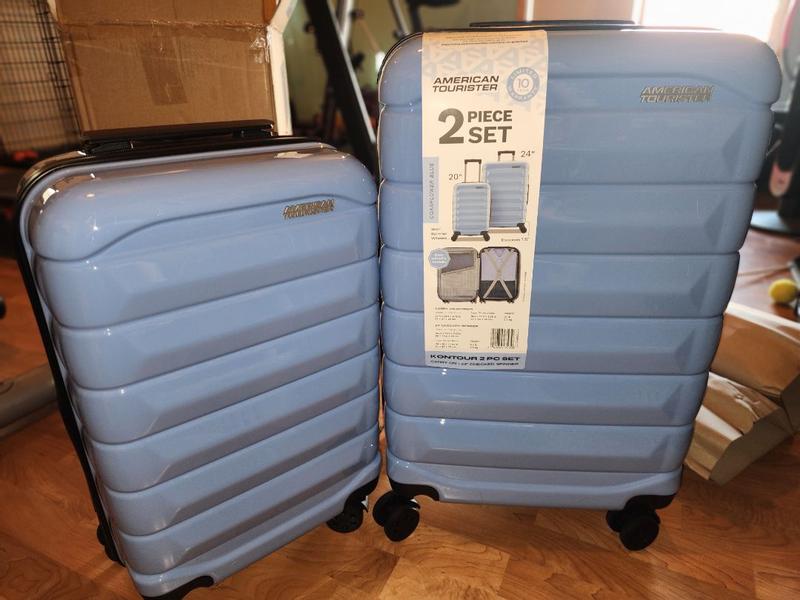 Honest Review of the American Tourister Kontour 2-Piece Luggage Set These suitcases honestly impressed me. They’re super lightweight, very easy to maneuver, and the material feels sturdy without being heavy. The quality is way better than you’d expect for the price — the finish is solid, it doesn’t dent easily, and the color is gorgeous and glossy. In terms of functionality, they’re extremely practical: the carry-on and medium size are perfect for short trips or week-long travel, the handle glides up and down smoothly, and the interior has great space and organization. For warm climates or quick on-the-go packing, they’re a total win because they open easily and don’t add extra weight.
