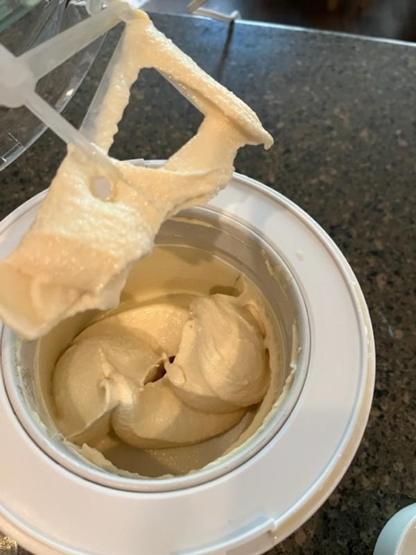 This is my first ice cream maker ever and I couldn’t be more pleased. It is really easy to use. I think the portion size it makes, just meets my needs perfectly. My favorite part are the recipes, because I can please everyone in my family and they come out perfectly if you follow them exactly. I do recommend.