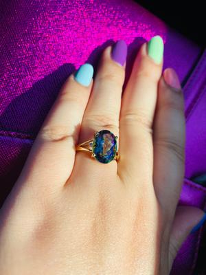 The ring is beautiful, although the gold is very light and thin. The stone amethyst is beautiful purple and huge. For the price I am very happy with this purchase.