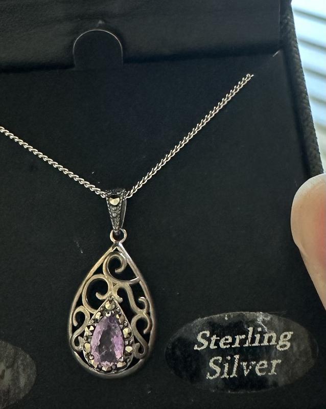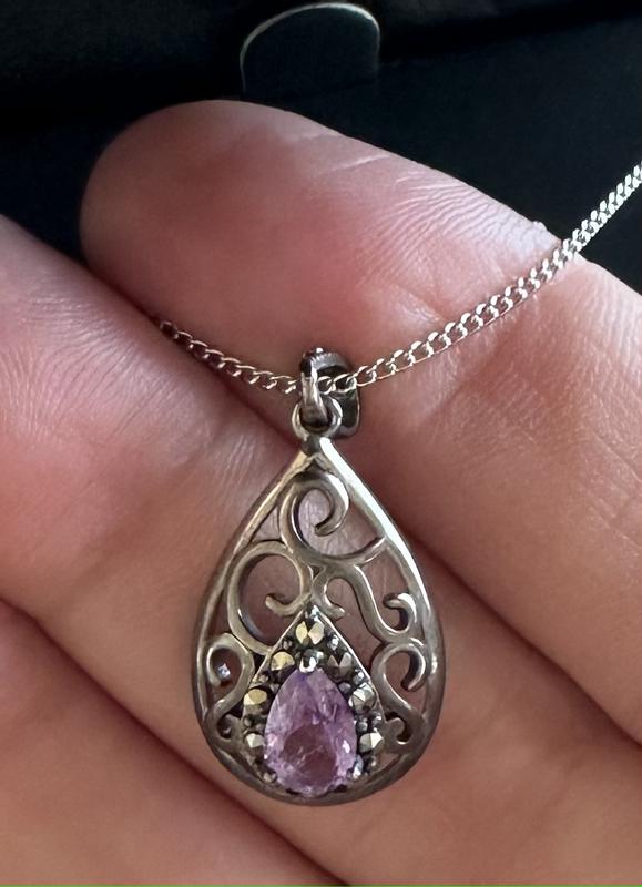 Amethyst Open Work Teardrop Pendant and a Curb Chain