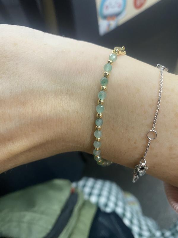 I love this bracelet! I love that it is small and dainty, but substantial enough that it’s eye catching. The green color is beautiful, I would buy more colors in a heartbeat, specifically white, and light blue!
