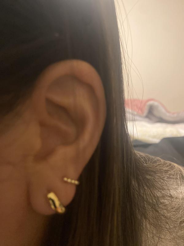 I have 4 piercings in each ear so I’m constantly switching out my jewelry. But these hoops? They’re always somewhere in my stack. So classic and look so good! They also hold up pretty well. I wear them in the shower and to the gym every day. I will mention that this is my 3rd pair because the clasp tends to wear out after about a year. However, this is likely due to my wear and tear on them. And for the price and an entire years straight of wear, I can’t really complain.