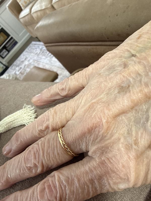 I want to start off saying that I really like this ring, however, I have had it for about a week or two and have worn it nonstop and the gold has turned into more of a silver. Just something to keep in mind!
