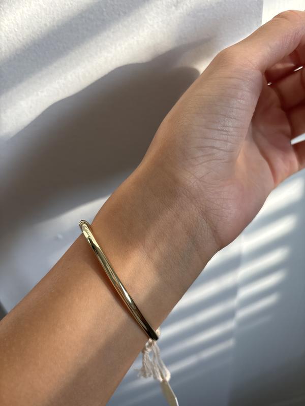 This bracelet is beautiful. It is comfortable on my wrist based on its oval design. I am a minimalist when it comes my jewelry; no big clunky jewelry for me.