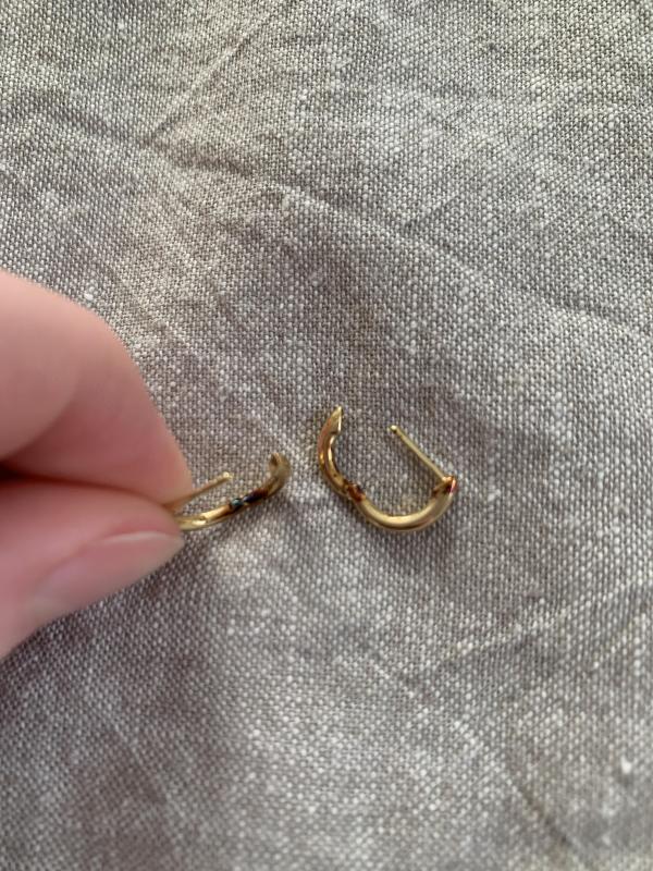 have ABUSED these earrings - worn them in my earlobes almost every day for two years, showering, swimming, etc. A handful of days a month I will wear fun earrings, but 99% of days I am too lazy to switch. They are maybe tarnishing a little little bit and aren't quite as gold as they used to be, but I do zero cleaning/maintenance on them besides wiping with alcohol when I take them out so cannot exactly be surprised. Might order a few pairs of these as "backup" for my entire lifetime in case they discontinue these because I would be genuinely distraught if I wasn't able to wear these all the time and my piercings would probably close up if I had to remember to put in earrings every day. My earlobes are small and piercings are relatively low, so they fit. I measured the product specifications against my ear before ordering to make sure they would, but for some people they may be too small (but would be a good option for a second piercing or something, I don't know).