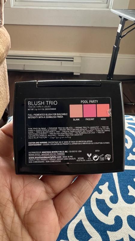 The Anastasia Beverly Hills Blush Trio has a smooth, lightweight formula that blends effortlessly into the skin. The shades are beautifully pigmented but easy to build, making it simple to create a soft flush or a more defined pop of color. The compact size is perfect for travel, and the powders feel silky without being heavy. There’s no strong scent, and application is quick and even with both brush and sponge.