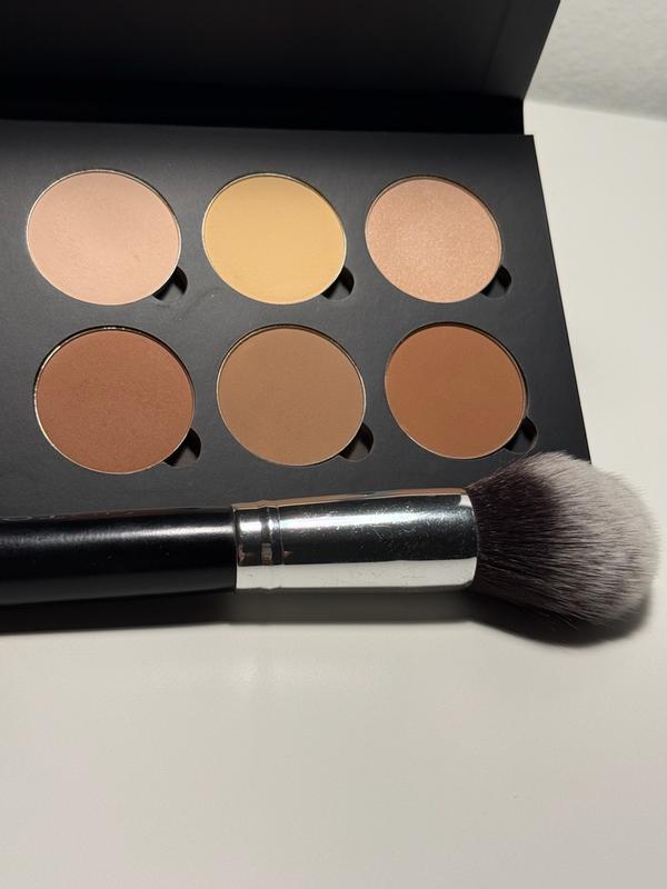 Highly versatile, with shades that work for both dramatic and natural looks, and can double as eyeshadow. The refillable pans also allow for customization as skin tones change seasonally. Provides a smooth, natural finish that doesn't look dry or patchy when blended well. It features both matte and shimmer shades. The product is fragrance-free and unflavored. The powders have a buttery soft, finely milled texture that glides onto the skin easily.