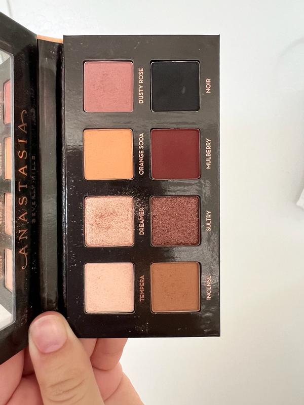 Abh soft eyeshadow pallet mini is the same great pallet as the original basically only of the the best colors. Super blendable. No fallout. Travel friendly. Gorgeous finish. It’s beautiful makeup that is high quality you expect from this company.