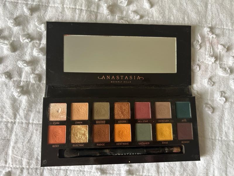 I have 3 different palettes from Anastasia I love them they have really good pigmentation and don’t fall out. This palette has more bold colors with some brown and gold colors.