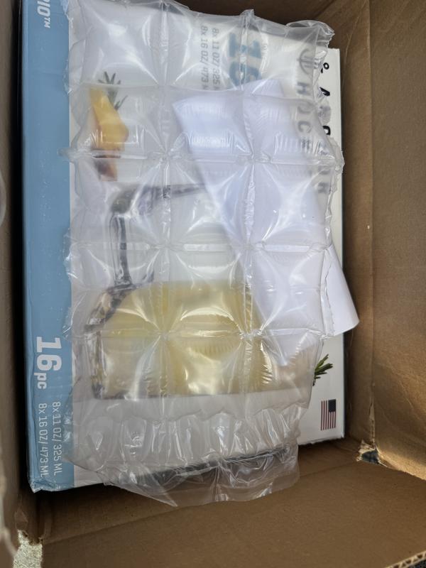 16 piece glass set looked good online so I ordered them. When I received the package, i found 4 broken glasses along eith shards of glass throughout the package. I contacted Macy's online. They wanted me to return the package! Seriously? They are shipping me another set. I am not optimistic that these will arrive intact.