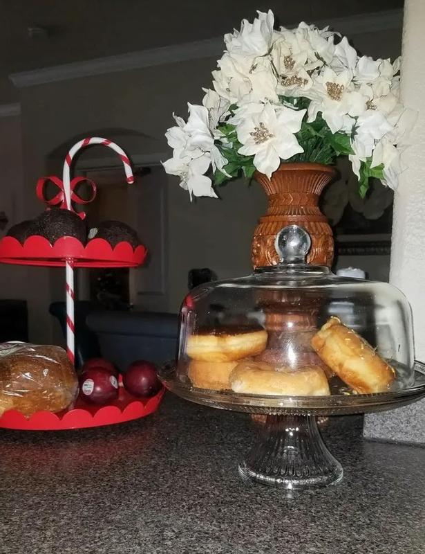 My daughter wanted a cake plate and cover. The fancy ones are pricey and the glass cover would break easy since it’s thinner. This is sturdy and pretty at the same time. It has some weight to it so should up pretty well. It’s a Christmas gift for her.