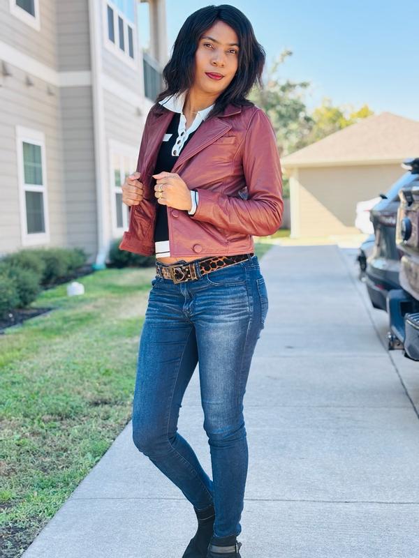 All I can say is that the quality of this jacket is SUPERB!!! The style is absolutely classic that will ALWAYS be in fashion! The color is this rich wine/burgundy color that is so flattering on a lot of people. The smell of leather even attracts my dog lol This is definitely a luxurious high quality leather jacket that will serve you for years to come! The fit is perfect! Very comfortable and fits according to size. I highly recommend this beautiful jacket!