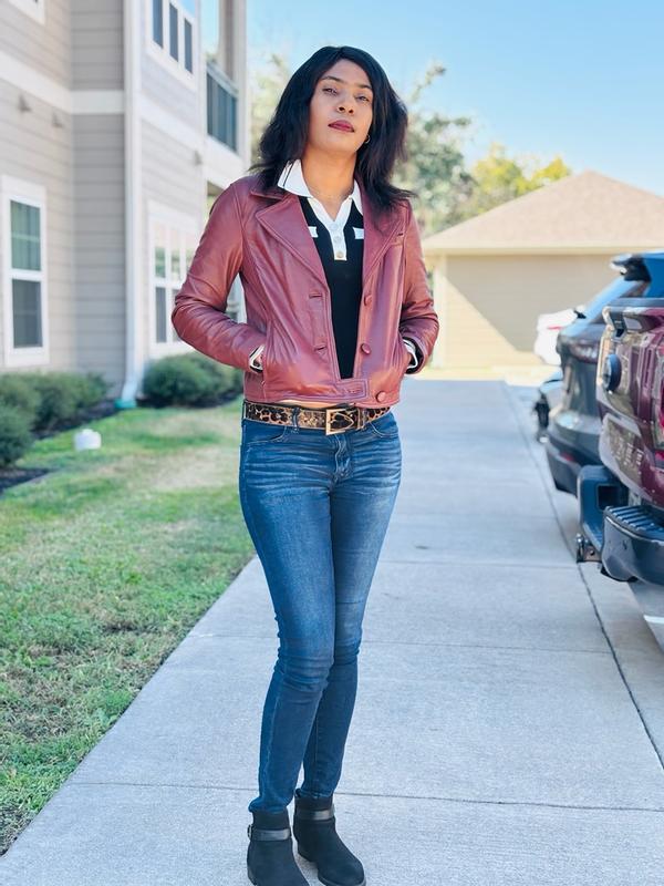 This jacket is incredibly soft and buttery to the touch — it feels luxurious the moment you put it on. The length is perfect for fall, hitting just right to pair with jeans or leggings while still keeping a flattering, feminine shape. It’s lightweight yet warm enough for crisp autumn days, making it an ideal transitional piece for the season. The fit is spot-on — not too tight, not too loose — and it layers beautifully over sweaters or tees without feeling bulky. The craftsmanship is impressive, from the stitching to the smooth zipper and overall structure. And the color? Absolutely gorgeous — rich, versatile, and perfect for fall. This has quickly become my go-to jacket for everyday wear.
