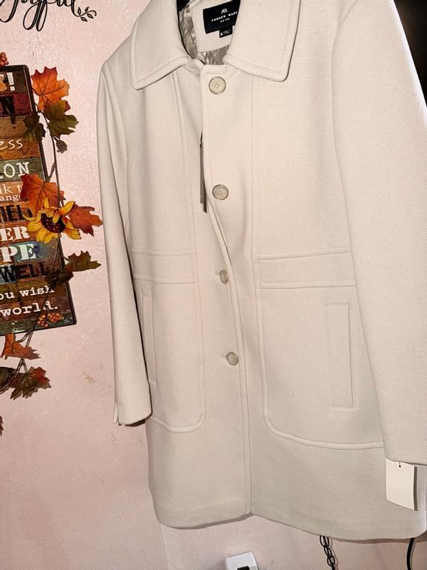 Andrew Marc Emmeline wool blend slim coat! I was pleasantly surprised to receive this for reviewing purposes, and I must say, it's a testament to the brand's commitment to quality. The coat is made from a beautiful blend of wool, nylon, and polyester, which not only looks great but also provides excellent water resistance - perfect for those unpredictable weather days. The design is sleek and modern, with a classic notch lapel and button-front closure. The weight is just right - not too heavy, not too light - making it perfect for transitional seasons. The fit is fantastic, skimming my curves without being too tight or too loose. I love that it's size-friendly, catering to a range of body types without compromising on style. The closure is smooth and secure, with nice, sturdy buttons that add to the coat's overall quality. Speaking of quality, I can tell this will hold up for a while. The only thing is, I was sent the beige color instead of the black I chose. While beige is lovely, I think black would've been a great choice for a more modern, versatile look. That being said, the beige is beautiful in its own right, and I'm sure it'll get plenty of wear. Overall, I'm blown away by this coat and can't wait to try more products from Andrew Marc. If you're in the market for a stylish, high-quality coat that'll keep you warm and dry, I highly recommend this.