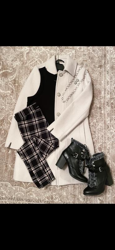This coat is absolutely stunning! I am obsessed. It is so well made. It’s tailored to perfection. I love this cream color. The detailing is done so well. I truly love how this looks. It’s a head turner! It definitely has warmth but it’s not overly heavy. I highly recommend! It’ll be one of my staples!