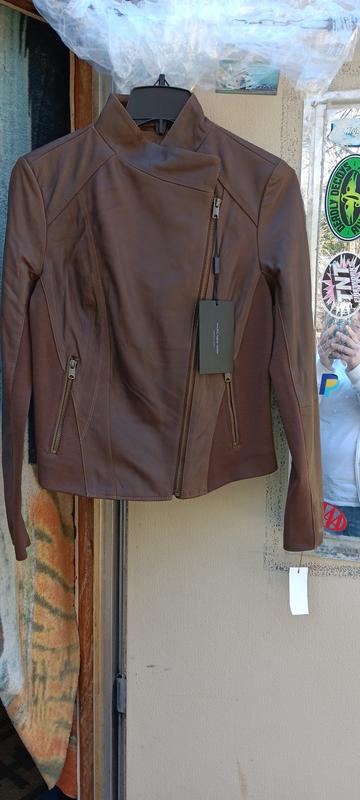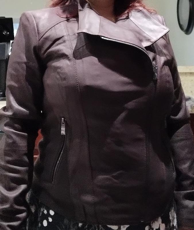 This Andrew Marc Women's Felix Moto Jacket is a really nice quality jacket. It fit so nicely. This jacket is made with a nice feeling leather. I like the added panels on the side which allowed for the jacket to fit closely to my body.
