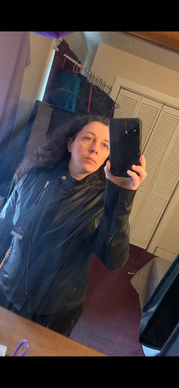 This jacket is really cute! I got an XL and it fits really well. The sleeves are a little long but i don’t mind it. It is a lighter weight leather so it’s the perfect fall jacket. It also has a little stretch to it so it’s very comfortable.