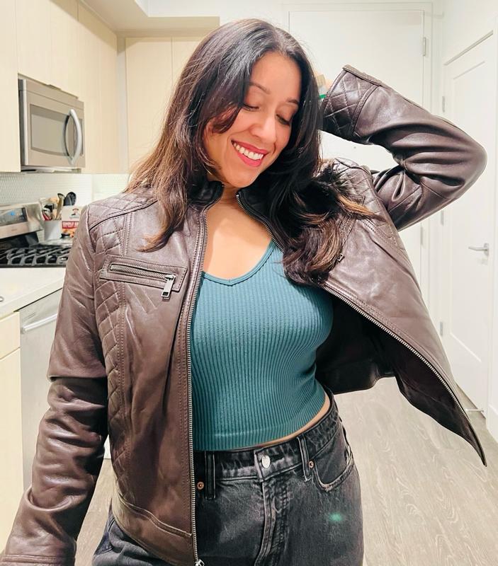 If you’re looking to splurge, the Andrew Marc Women’s Racer in deep brown is seriously worth it. The material is gorgeous, high-grade leather that feels soft right away, not stiff at all, and the inner lining is super smooth, so it slips right on easily over anything. For comfort, it has that sleek racer fit but isn't tight, and the overall weight is just right. It feels durable and warm without being bulky for running around town. Since it’s premium leather, the care is important: skip the washing machine and stick to professional cleaning and conditioning it once in a while. Overall, it’s a fantastic, high-quality zip-up jacket that’s built to last and look better the more you wear it.