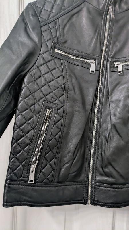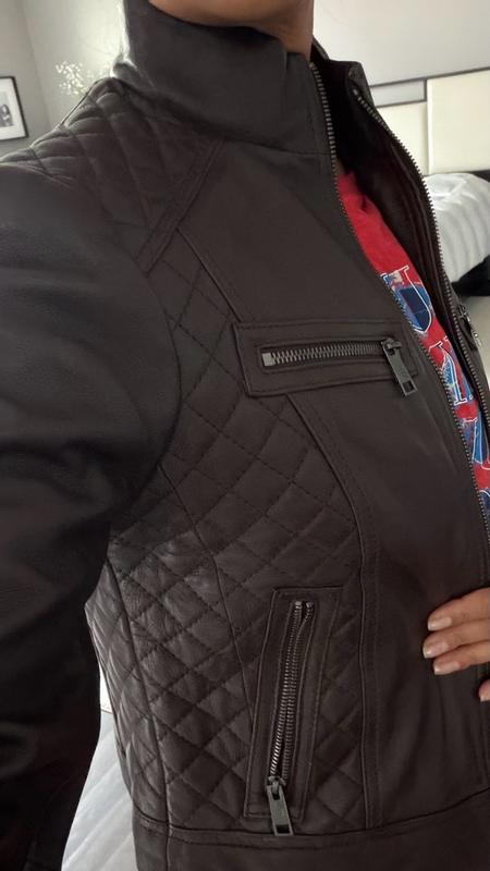 This jacket is absolutely gorgeous. The leather is soft, smooth, and feels high-quality right out of the box—no stiffness or long break-in period. The racer style is sleek and flattering, giving a modern, edgy look without being over the top. I love how versatile it is; I can wear it with jeans, dresses, or even a simple tee and it instantly pulls the whole outfit together. The fit is true to size and comfortable, with enough room for light layering. Overall, it’s a timeless piece that feels both durable and chic. A fantastic investment jacket!