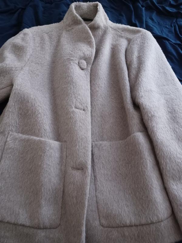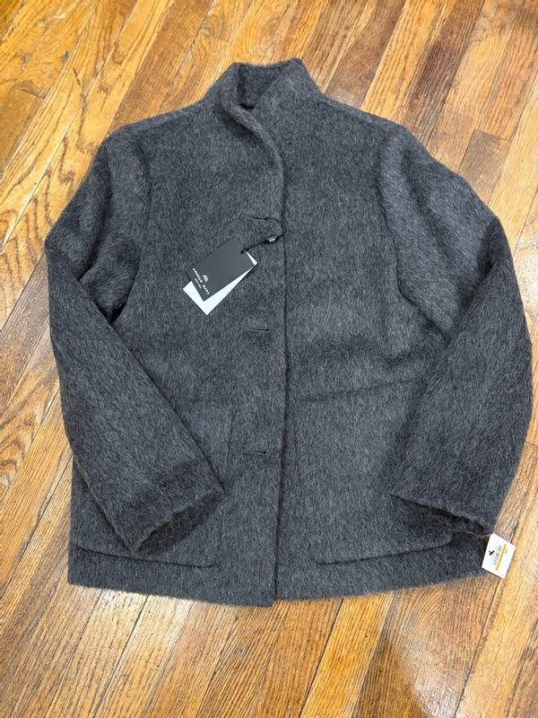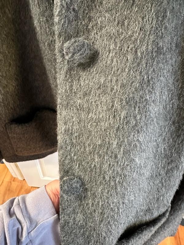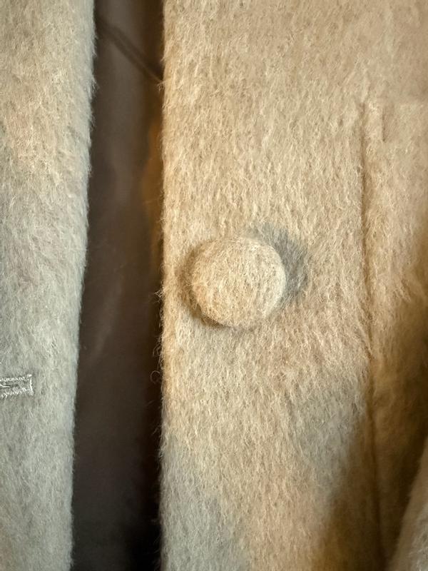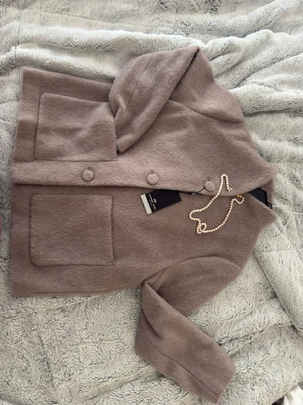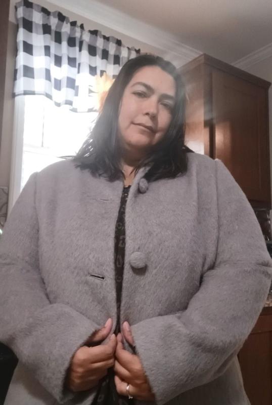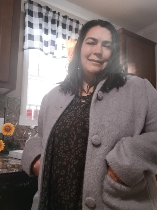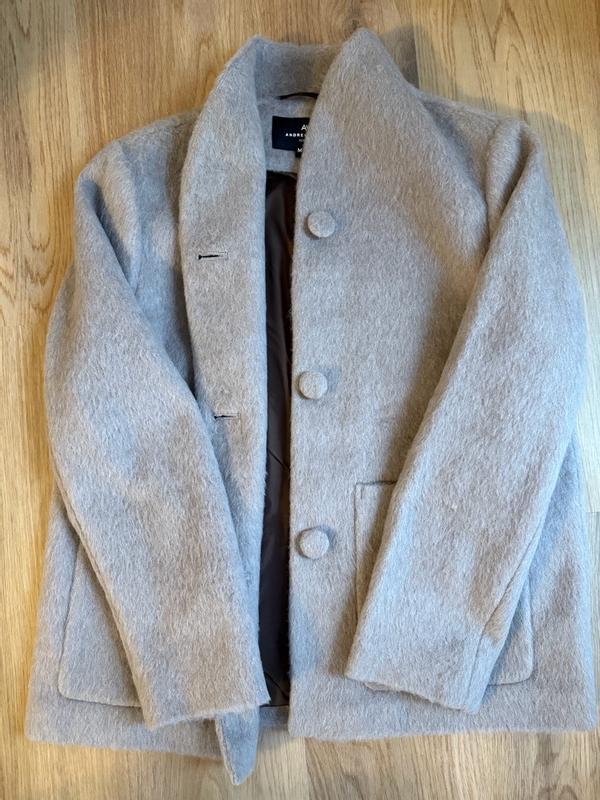 This stylish jacket has been the perfect addition to my wardrobe! It’s comfortable, warm, and fits true to size. I ordered a medium which is my standard jacket sizing and was happy with the fit. It fits easily over my clothing without looking too big. The color is a soft grayish brown, and it matches both my light wash jeans and black work pants, making it the perfect jacket to dress up a casual outfit for dinner out or as part of my office attire. The inside material is sleek and has a beautiful brown color that goes perfectly with the outside color. The outside wool is soft and warm (so don’t leave it laying around for too long because it almost immediately attracted my cat to lay on it when I took the flat lay photo!) The buttons are somewhat difficult to take in and out of the closure. It’s not impossible, but it does require going more slowly than I initially anticipated. Overall, this is a great staple to add to my wardrobe and I’ve already gotten multiple compliments on it.