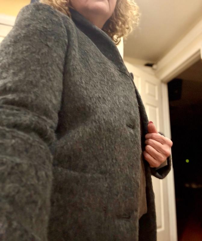 If I could give this jacket 10 stars I would! This is such a beautiful fabric and it’s lined on the inside giving it a luxurious feel. The fit is perfect with some extra room in the torso but not enough to make it look baggy or ill fitting. It’s heavy enough to keep you warm but not suffocating. Itreally elevates any outfit. Love Love!
