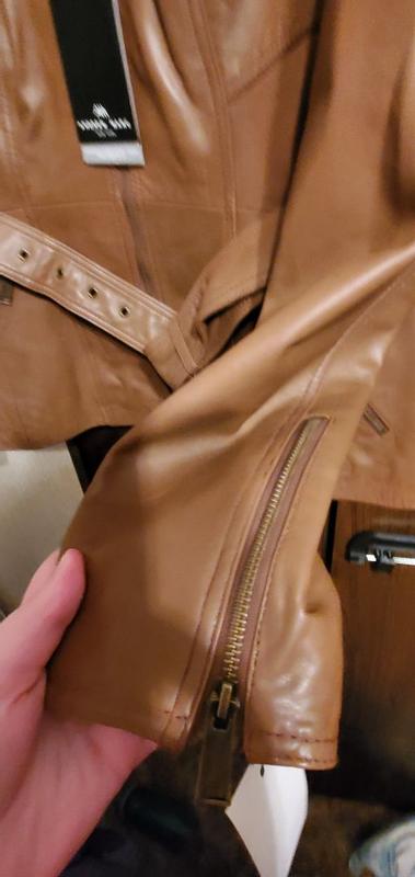 Quite a nice jacket for the price. There are two problems with it. First, the lining of the sleeves is too bulky, so after I put my arms through I have to stuff the lining back in. A tailor might be able to fix it. Not sure. Also, the “roller” on the metal belt buckle (the part that makes it easier to slide the strap through) makes the buckle annoyingly loud. It was easy to remove it, though. I’m often between a small and a medium, so I sized up to the medium. A good choice. Again, this is a nice leather jacket that’s even better after you fix its problems.
