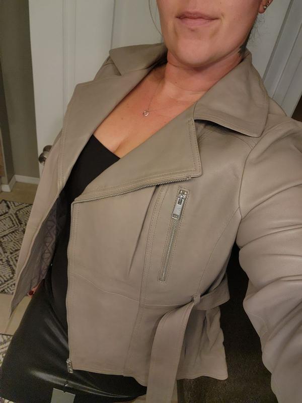 I love this Andrew Marc Women’s Violet Belted Moto Leather Jacket in black. It is so chic and so high quality. The leather is so soft and not stiff. It is lined and is so warm for this type of jacket. Whenever I wear it, I get so many complements because I look so posh and put together. Definitely my new favorite jacket!