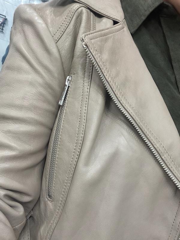 This leather jacket looks expensive and very good material, heavy with good zippers but I wish I sized up by one size at least! Love the color and material and would wear again from this brand