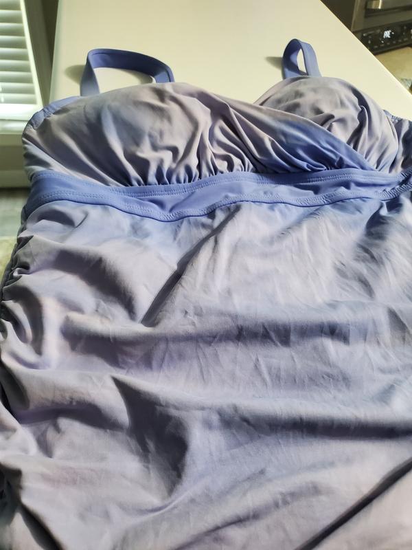 I love this suit! So flattering - and nicely hides any stomach imperfections. I must have tried on 20 or more suits at a local swim shop that has a huge selection of plus sized suits, and this suit (ordered online no less) was heads snd shoulders the winner. I bought one on black as well. I paired it with a swim skirt (also from Macys).