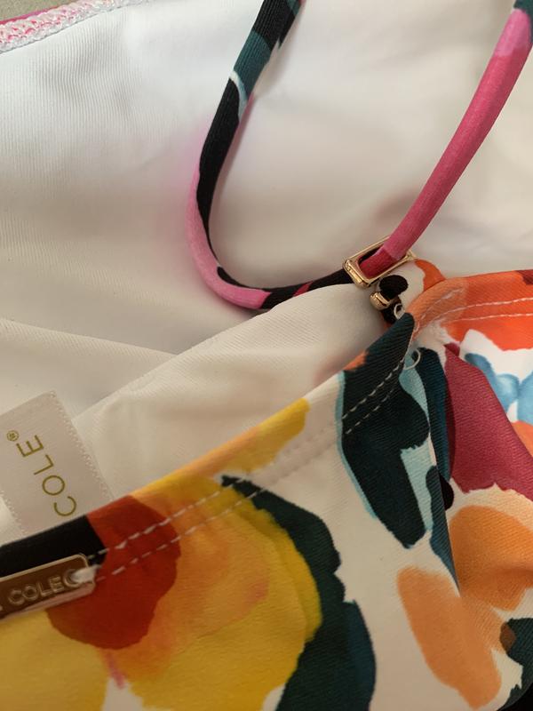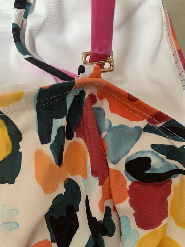 I gave this Tankini 2 stars because it did have some positive attributes. Otherwise, it would have been no stars. This Tankini is cute. I loved it. You can wear different color bottoms with it. The fabric is nice. Drapey enough to cover my tummy. Now for the negative things. This suit is not made for large breasted women. The straps are flimsy and to top it off they come disconnected from the (plastic) tabs on the back. Thank goodness it was must me and my husband in the pool at the time. The top offers no support. I would have loved to have kept it was not at the risk of exposing myself in public.