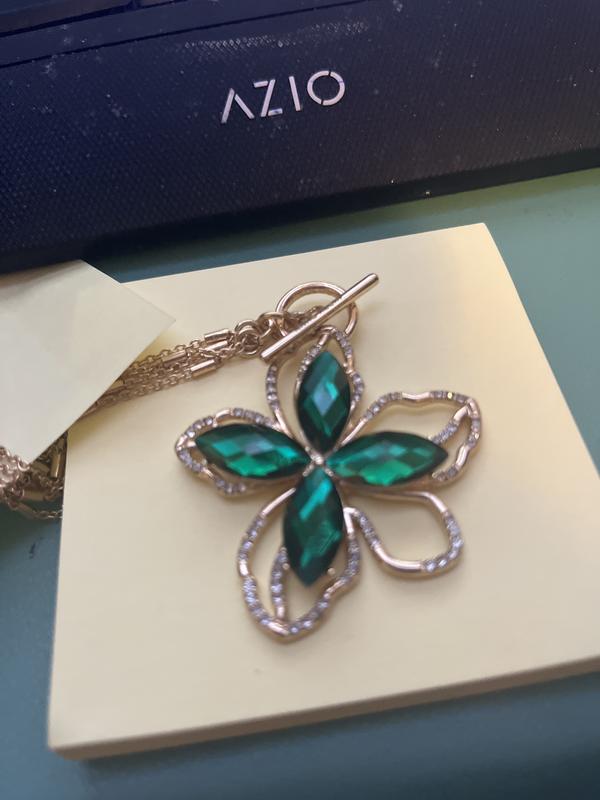 Not only was the necklace delivered to me in tangles, it was broken, looking nothing like the photo shows with double strands and a toggle at the base. There were no double strands, no toggle at the base. The necklace also doesn't have a clasp. Further, the necklace is of cheap quality. VERY cheap quality. The medallion is so lightweight that it won't even hold down a strip of tissue paper during a mild breeze! Cannot believe the original price for this garbage. Cannot believe that it carries an Anne Klein label. If you like getting your jewelry from a bubblegum machine, this necklace is for you!